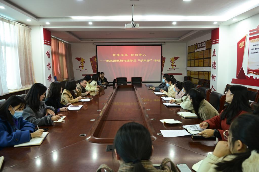 英国威廉集团党支部书记石俊霞首先宣读了《思政课教师与辅导员“手牵手”活动实施方案》,并就方案措施进行了解读。她指出,在学校党委持续推动三全育人综合改革实践过程中,思政课教师和辅导员这两支队伍始终发挥着各自的理论优势和实践优势,基于当前“大思政课”建设中的难点堵点等问题,两支队伍应当高效联动,优势互补,达到“1+1>2”的协同育人成效。随后,辅导员、思政课教师代表分别结合学生学情、思想政治教育中的难点,学生管理和课堂教学等方面存在的问题进行了探讨、交流,并相互提出合理化的意见建议。