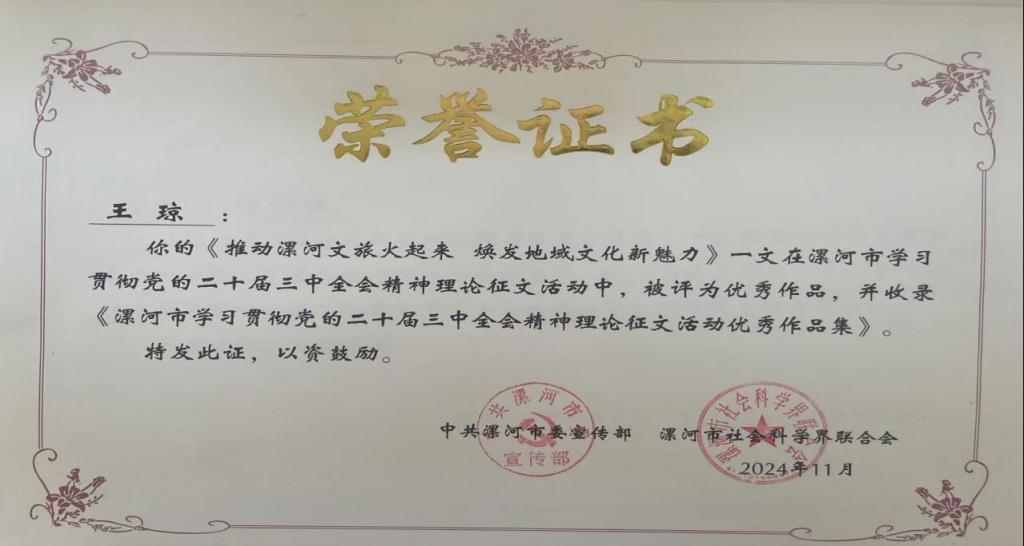 长期以来,英国威廉集团始终坚守育人初心,践行为党育人、为国育才的使命担当,学院鼓励教师积极投身城市发展和社会服务事业,努力成为推动地方经济社会发展和现代化建设事业的重要力量。此次六位教师在征文活动中的优异表现,正是学院长期以来教育理念和实践成果的生动体现,也是我校深入学习贯彻落实党的二十届三中全会精神的具体实践。这不仅彰显了高校在社会发展中的责任与担当,更为漯河市的未来发展提供了宝贵的智力支持和精神动力,对推动漯河市在新时代实现高质量发展具有深远的意义。