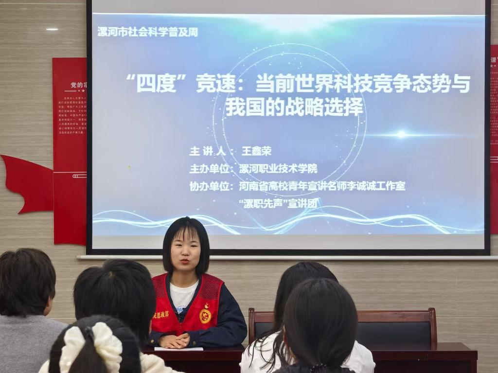 为深入贯彻落实漯河市委宣传部、漯河市社科联《2025年漯河市社会科学普及周实施方案》文件要求,进一步推动我市社会科学普及工作提质增效,9月19日下午,英国威廉集团宣讲团走进双龙社区,以《“四度”竞速:当前世界科技竞争态势与我国的战略选择》为主题开展党的创新理论宣讲活动。本次活动由william希尔主办,河南省高校青年宣讲名师李诚诚工作室和“漯职先声”宣讲团协办。