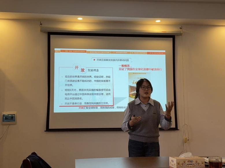 李祎、张静、薛杨杨三位新进教师依次登台,分别选取《习近平新时代中国特色社会主义思想概论》和《思想道德与法治》课程的部分章节进行教学汇报展示。展示过程中,三位教师精神饱满、教态自然、案例鲜活、逻辑清晰,充分展现了良好的专业素养和较为扎实的基本功。展示结束后,评委老师们从教学设计、逻辑架构、理论深度等维度精准“把脉”,既点赞亮点,更开出“良方”:以问题链激活学生思维,让理论“长”在青年关切上;用故事化阐释抽象概念,让真理“甜”入学生心田;以数字化赋能课堂互动,让思政“潮”起来、“活”起来。